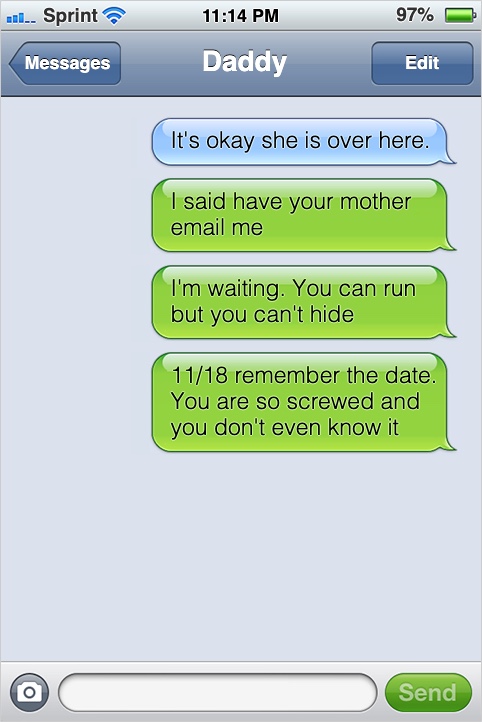 You can run but you can’t hide? What does this even mean? My husband said, “I don’t even know how to respond to that message.” We even had a few jokes about how that statement might sound like out of a bad western movie. It even reminded me of Yosemite Sam. The comment about her being screwed sounded like a threat with more to follow. My daughter did not respond to the latest messages.